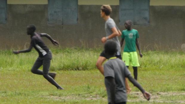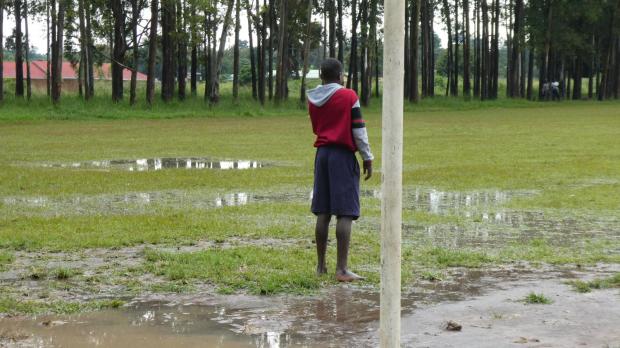 Währenddessen verwandelte strömender Regen den Fußbellplatz in ein Schlammfeld. Doch das hielt nicht von einem Match zwischen Jungs und Mädchen ab.