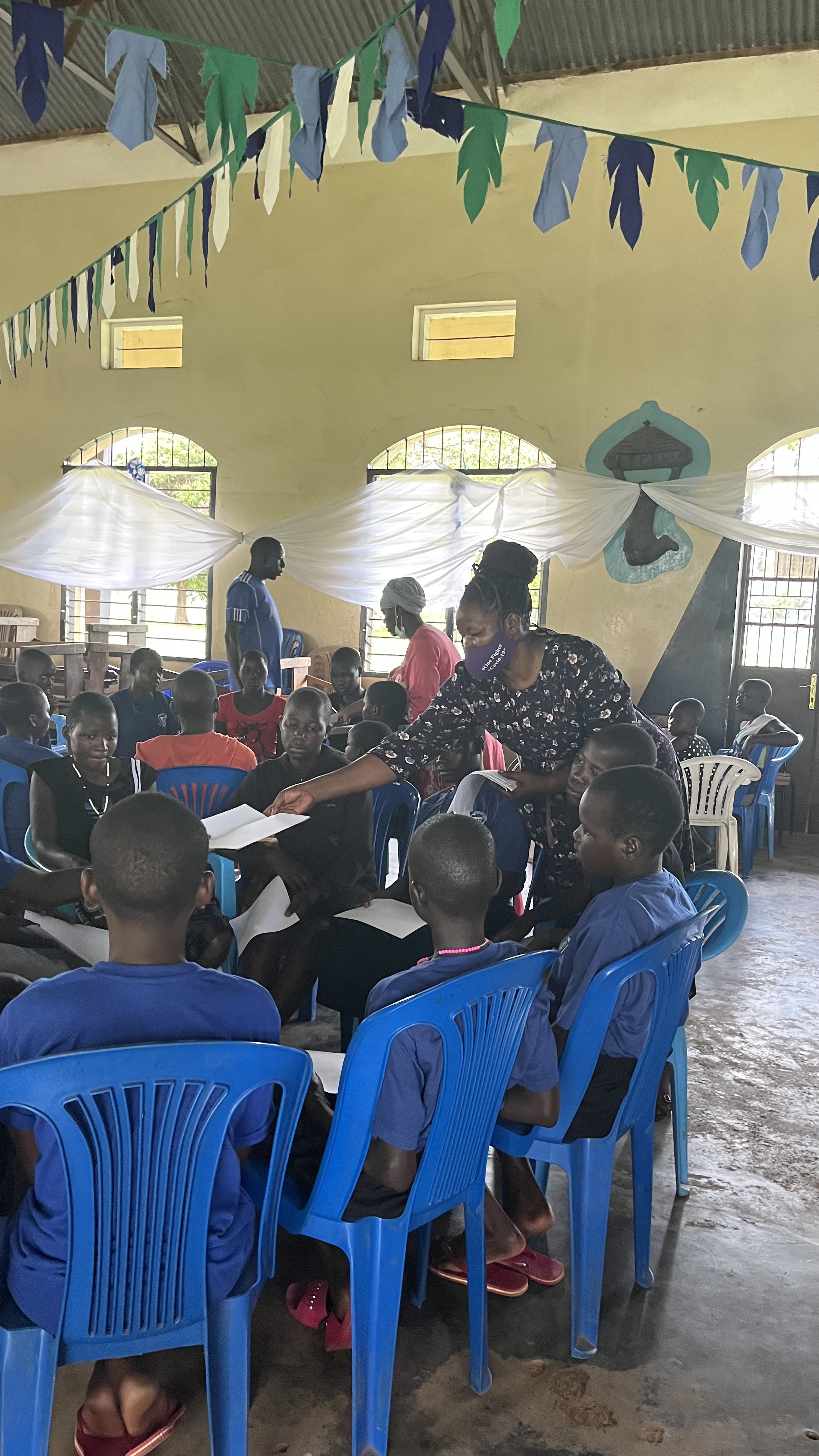 Für den ersten Teil haben wir das Volunteer Action Network, eine NGO hier aus Gulu, die eine Initiative zu „Healthy Periods“ haben, eingeladen. Die Organisation leistet echt tolle Arbeit, besucht regelmäßig Schulen, informiert und teilt auch Pads aus, die sie lokal herstellen. HIER könnt ihr noch mehr erfahren. Aloyojok Prisca, Atoo Conny, Nakalema Minisifah und Kidega Ben haben uns durch den Vormittag geleitet und erst nur mit den Mädchen über ihre eigenen Erfahrungen, Mythen und „Safe Days“ gesprochen. Es war richtig toll zu sehen, wie alle langsam warm geworden sind, sich geöffnet haben und ihre eigenen Erfahrungen geteilt haben. Dabei hat uns Minisifah von ein paar Geschichten erzählt, die sie an vorherigen Schulbesuchen gehört hat. Einem Mädchen wurde zum Beispiel erzählt, dass sie während ihrer Periode keinem Mann in die Augen gucken darf, das sie sonst schwanger werden würde. Eine andere hat berichtet, in ihrem Dorf dürfen Frauen während der Menstruation nur im Sand sitzen, der das Blut aufsaugen soll, und das Tag und Nacht. Genau um solche Mythen einzuräumen, ist es so wichtig, dass man über dieses Thema spricht und wir sind sehr dankbar, wie locker und entspannt, jedoch gleichzeitig sehr informativ die vier es gestaltet haben.